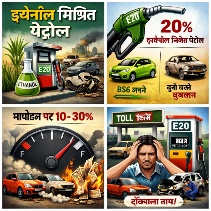 १ एप्रिलपासून देशभरात २०% इथेनॉल मिश्रित पेट्रोल (E20) उपलब्ध होणार असल्याच्या चर्चेमुळे वाहनधारकांमध्ये मोठी चिंता निर्माण झाली आहे. “९०% गाड्या भंगारात जाणार”, “मायलेज १० ते ३०% ने कमी होणार”, “BS6 वाहनांशिवाय इतर गाड्यांचे मोठे नुकसान होणार” असे अनेक दावे सोशल मीडियावर व्हायरल होत आहेत. या पार्श्वभूमीवर हा विषय नेमका काय आहे, सरकारची भूमिका काय आहे आणि याचा सामान्य माणसावर काय परिणाम होऊ शकतो, याचा सखोल विचार करणे आवश्यक आहे.